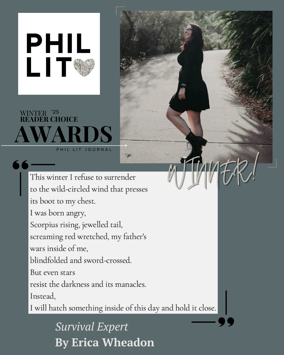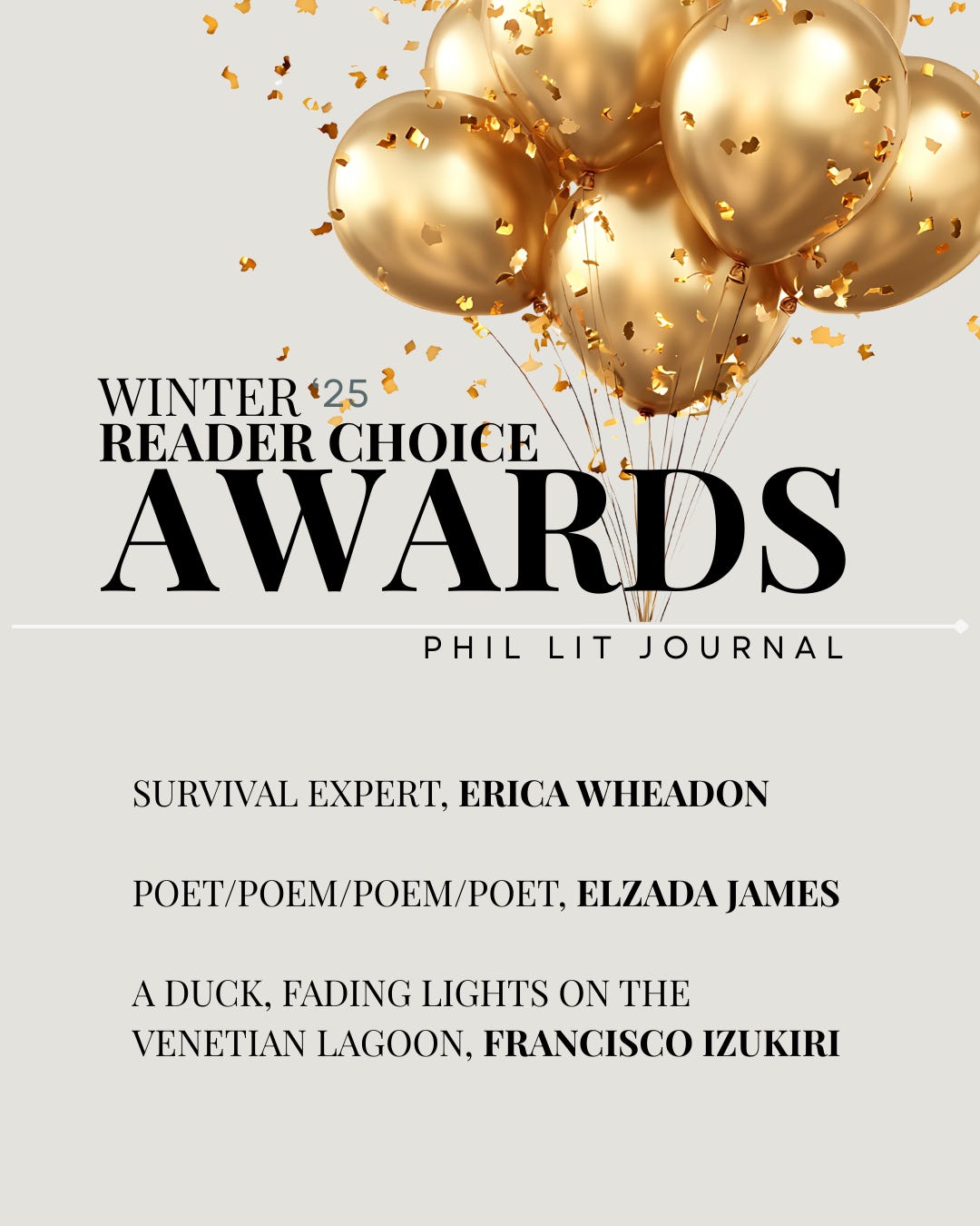 Vote for Your Favorite Poem from the SPRING ‘26 issue. The top 3 reader-selected poems from each issue will be featured in a special section in our Annual PHIL LIT PARAGON, Poetry Anthology AND receive a Contributor Copy (print).